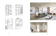 Alle Häuser sind nach den gleichen strukturellen Regeln aufgebaut, reagieren aber mit Variationen auf die unterschiedliche Geometrie und Neigung der beiden Baufelder sowie die Lage innerhalb der Baufelder und bilden so eine beruhigende Klammer um die ganze Überbauung.