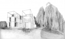 Mit dem auf diesem Plateau geplanten Gebäude wird die Reihe der Villen an der Neumünsterallee ergänzt. Wir haben versucht, die für uns zentralsten Elemente der bestehenden städtebaulichen Struktur in unser Projekt einfliessen zu lassen, so die Position der Häuser unmittelbar auf der Baulinie entlang der Neumünsterallee, ein gegliederter, skulpturaler Baukörper und der seitlich angeordnete Zugang zum Haus über eine gekieste Vorfahrt. Anders als unsere Vorfahren um die Jahrhundertwende mussten (oder durften) wir uns mit einer bereits gewachsenen Parklandschaft auseinandersetzen. Ein wichtiger Aspekt während des Entwurfs war deshalb der Bezug zur bestehenden Bepflanzung des Gartens, insbesondere zu der sehr dominanten Hängebuche genau vor dem Neubau. Alle Wohnungen spielen mit diesem Baum, indem sie Ausblicke sowohl in die Gartenräume links wie rechts von der Buche lenken oder gar unter ihr hindurch wie in der Erdgeschosswohnung. Auch die von der Neumünsterallee zur Zollikerstrasse sanft abfallende Topografie floss in unser Projekt mit ein. Anders als etwa bei der Villa Stockar (Neumünsterallee 12), die durch einen mächtigen Sockel und einen Kiesstreiffen sich klar vom Garten abhebt, passt sich unser Projekt insbesondere im Schnitt dem Terrain an und versucht so auch im Inneren die Parklandschaft spürbar zu machen. Von ihren klassizistischen Nachbarhäusern unterscheidet sich unsere Villa auch durch ihre fliessende innere Raumaufteilung. Die Wohnungen entwickeln sich nicht in erster Linie um einen Zentralraum, sondern sind in Raumschichten gedacht, die sich sowohl gegen den Garten immer weiter öffnen – durch zunehmende Raumhöhen wie auch durch grössere und zahlreichere Fenster – wie auch im Innern Durchblicke und Bezüge herstellen.