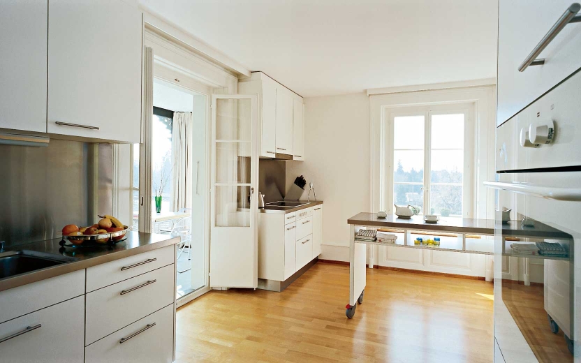 In einem Mehrfamilienhaus einer ehemaligen Gärtnerei, vom Amt für Denkmalpflege als schützenswert eingestuft, sollte die Erdgeschosswohnung renoviert und vergrössert werden.